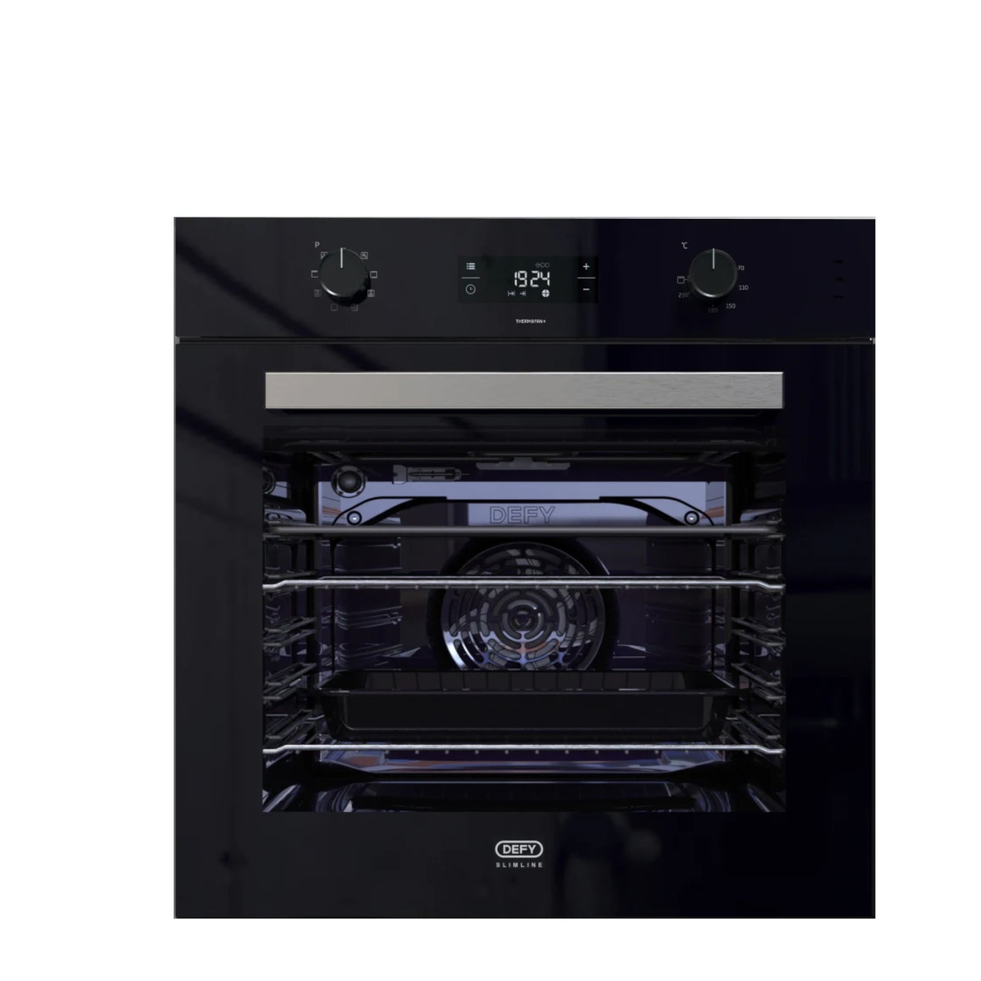 It's time for innovative cooking from Defy with this 70L multifunction under counter oven, delivering on unmatched reliability. With its sleek black design and brushed aluminium handle for easy handling, this eye-catching oven not only looks good in any kitchen but looks well in any good kitchen too. Equipped with Defy's legendary Thermofan+ Technology, allowing you to cook two different meals at the same time without mixing their flavours and aromas. The A Energy rating on this oven helps to reduce energy, saving you time and money while cooking the food you love. Steam-assisted cooking on the Defy 489 allows you to bake those succulent, fluffy recipes you have always dreamed of.