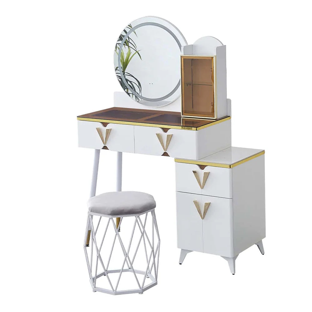 Experience luxury and elegance with our Elegant Dressing Table! This beautifully designed table comes equipped with an LED mirror and stool for the perfect makeup session. Get ready to indulge in the ultimate pampering experience as you effortlessly elevate your grooming routine.
